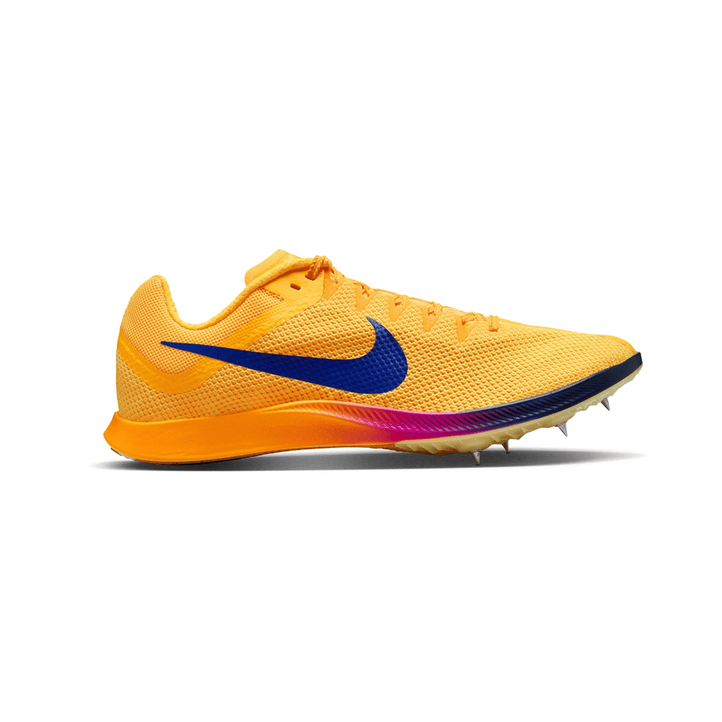 Dominate your middle and long-distance races in the Nike Zoom Rival Distance track spike. For the all-around athlete, this versatile spike has the cushion to keep you comfortable over longer distances and gives you a smooth, propulsive transition when it’s time to make your final push. The single-layer mesh upper is sleek and lightweight with excellent breathability to keep your feet cool. Plus, an arch band hugs the middle of your foot for support, creating a secure fit when you're running around the loop. Four replaceable spikes made of lightweight ceramic aluminum material give you optimal traction and durability whether you’re running on an indoor or outdoor track. Set a new personal best in a variety of events with the Nike Zoom Rival Distance track spike.